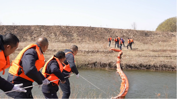 演练过程中,应急人员模拟开展围油栏布设